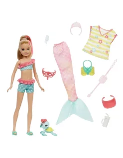 Just like their characters in Barbie Mermaid Power, Skipper and Stacie dolls are ready to undergo a mermaid transformation! Kids can play out adventures on land with Skipper or Stacie doll in a cute, casual outfit, plus fashion pieces and storytelling accessories. When it’s time to take to the sea, kids can use the mermaid tail, bodice and styling accessories to transform their doll into a magical mermaid! Each set includes a pet for fantastical friendship stories. With Barbie Mermaid Power dolls, kids ages 3 years old and up can recreate their favourite moments or dream up tales of their own! Each sold separately, subject to availability. Dolls cannot swim or stand alone. Colours and decorations may vary.