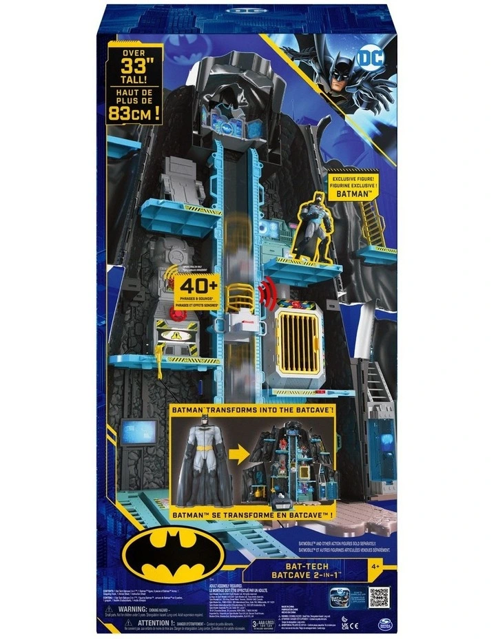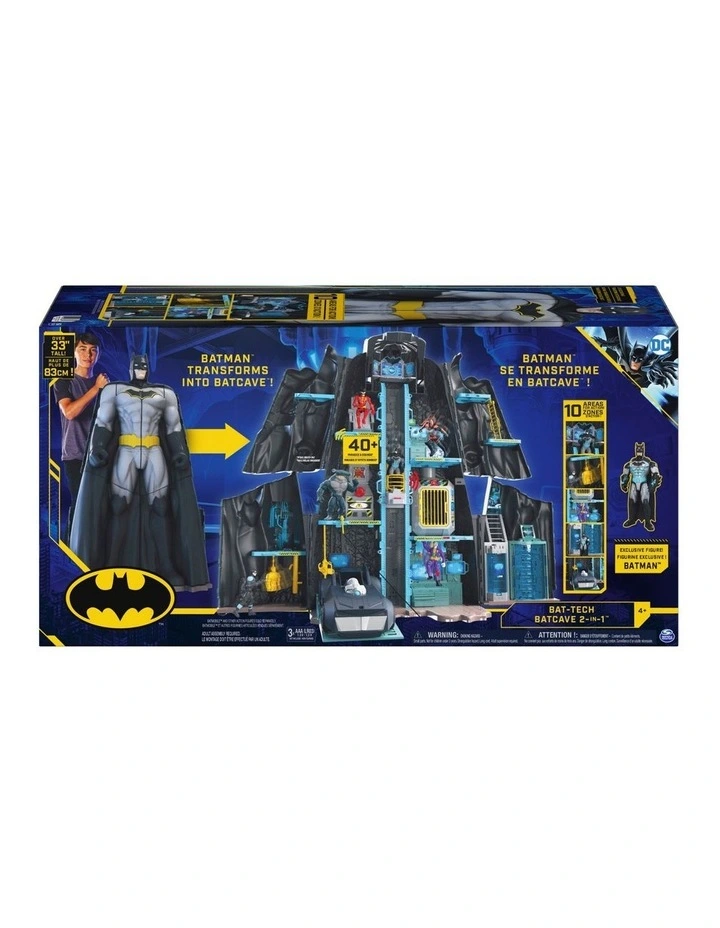 Take your Batman missions to the next level with the Bat-Tech Batcave Playset! The massive Batman is over 33 inches and transforms into an epic Batcave with everything you need to bring your Batman adventures to life! Open it up to reveal the Batcave with over 10 areas for action or close it up to transform it back into a giant Batman for easy storage!