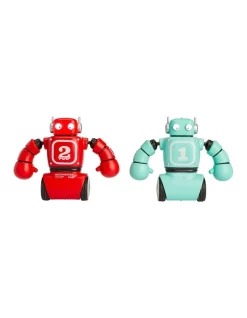 KNOCKOUT: Each time your robot is knocked down, its eyes will change colours. Once youve knocked your opponent down 3 times, it’s K.O. and you win the game.