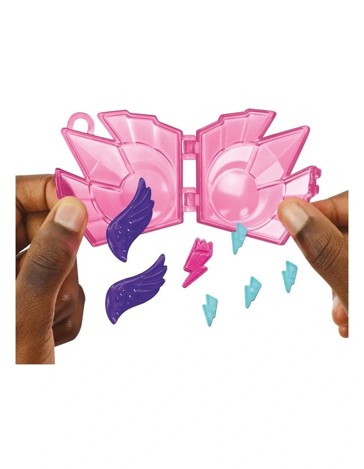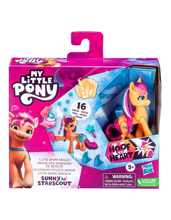 Discover pony powerups with Cutie Mark Magic figures and accessories! Look for Sunny Starscout, Zipp Storm, Princess Pipp Petals, and Izzy Moonbow (Each sold separately Subject to availability.) Plug in their Cutie Mark charms, connect them to Hoof to Heart accessories and then take it all on the go with the storage keychain. It makes a great holiday or birthday gift for kids.