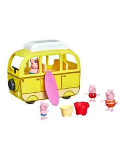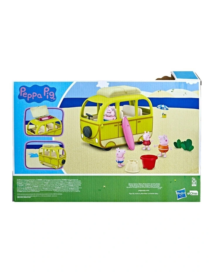 - LETS GO ON HOLIDAY WITH PEPPAS BEACH CAMPERVAN! This preschool vehicle toy opens up for lots of oinktastic fun! The opening roof features a storage unit for the familys surfboardΒ