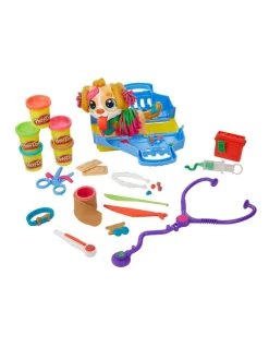 It’s time for this pup’s checkup! With so many ways to get creative and play pretend veterinarian, this vet toy for kids 3 years and up is sure to win the hearts of caring little animal lovers everywhere. Groom and style the toy dog by growing Play-Doh hair, giving it a haircut, and taking Play-Doh fleas off with tweezers. Start the checkup by making the pup grow a long Play-Doh tongue and using the 10 vet kit tools including a toy stethoscope, thermometer, and more. With 5 classic modelling compound colours, this ready-to-play animal doctor kit makes a great activity, birthday gift, or present for any occasion!Β