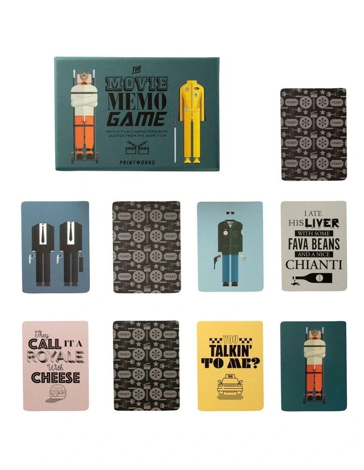 This challenging memo game will test your memory of some classic movies. You must identify iconic film characters only by their costumes and match them with famous quotes from the same movie. Get ready for some nostalgia and dont forget the popcorn (not included).