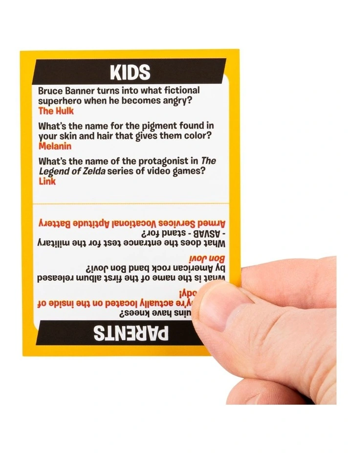 Each team reads trivia questions about their generation to the other side, moving their pawn on the board with every successful answer. Reach a Challenge space, and compete team vs team in crazy, up-and-active challenge. Make it to the end of the board first and complete one final challenge to be crowned the winners and enjoy the wager youve just won! This family game night, the stakes have never been higher or more fun! For 2 to 6 players, ages 8 and up.